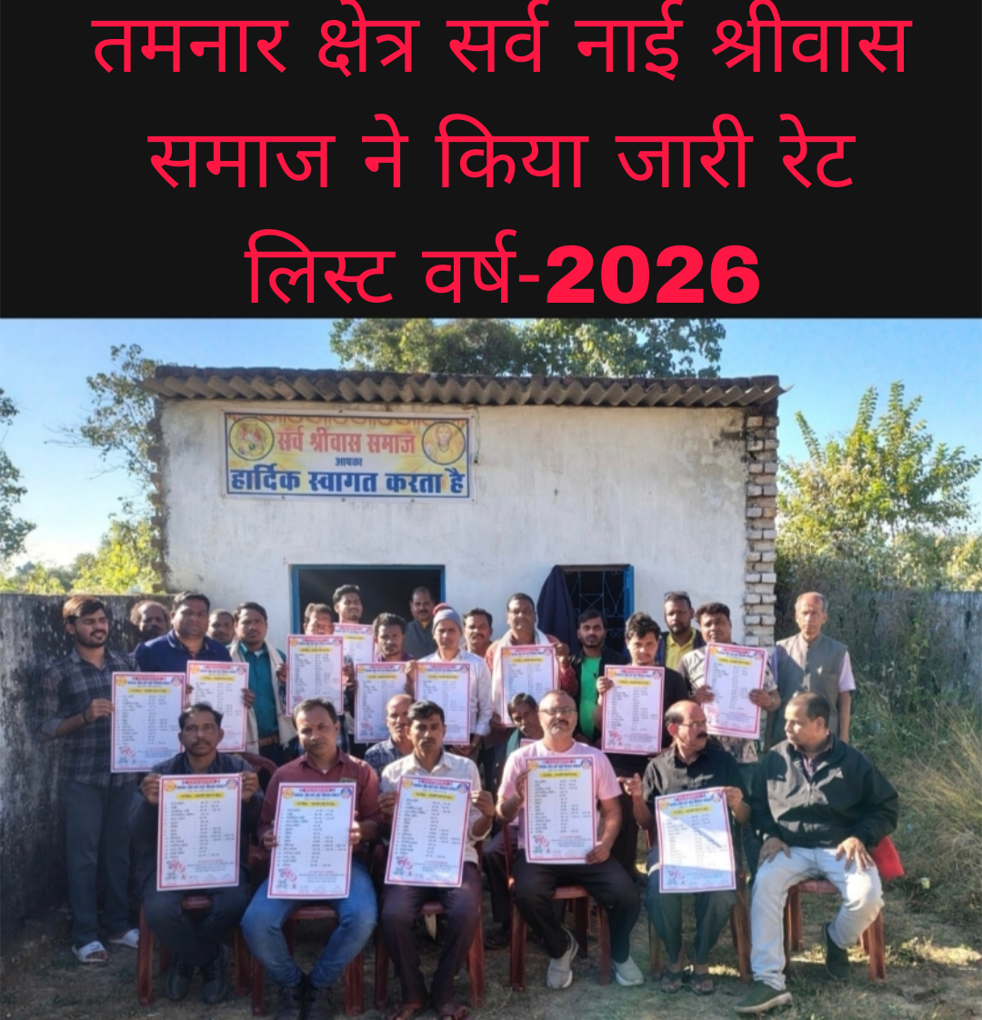 रायगढ़। तमनार उद्योग की नगरी एवं के ग्राम पंचायत गोढ़ी में दिनांक 30.12.2025 को सर्व नाई श्रीवास समाज भवन में महत्वपूर्ण बैठक का आयोजन किया गया जिसमें समाज के उत्थान हेतु विभिन्न चर्चाएं की गई एवं उसी बीच क्षेत्र में सामाजिक भाइयों के द्वारा अलग-अलग स्थान पर जेंट्स पार्लर एवं सेलून के संचालन कर रहे लोगों की मांग एवं आज के दौर की महंगाई को देखते हुए इस महत्वपूर्ण बैठक में सभी के द्वारा एवं समाज के वरिष्ठ प्रबुद्ध जनों की उपस्थिति में यह महत्वपूर्ण निर्णय लिया गया है,कि जनवरी नूतन वर्ष 2026 से सेलून,जेंट्स पार्लर, इन दुकानों का रेट लिस्ट पर वृद्धि करने सबके बीच सहमति बनी, जिसको देखते हुए नूतन वर्ष 2026 का मूल्य सूची
