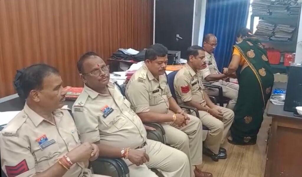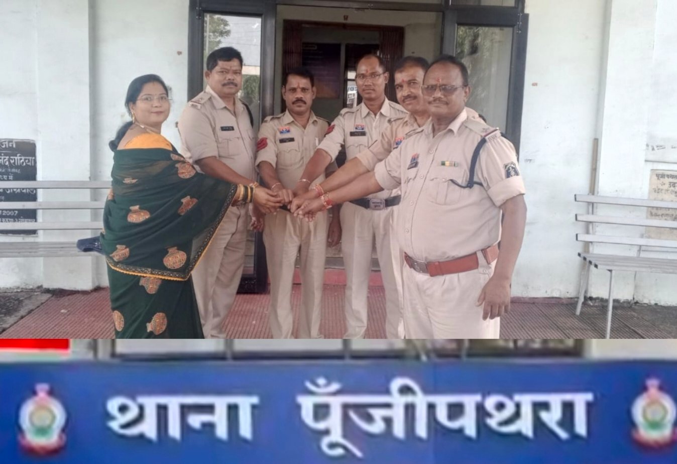 रायगढ़। पवित्र पावन पर्व रक्षाबंधन के इस अवसर पर जहां रायगढ़ जिले के अंतर्गत थाना पूंजीपथरा में श्रीमती पूजा साहू ने बांधी पुलिस कर्मी भाइयों को बांधी राखी ,और उनसे आशीर्वाद स्वरुप वचन रक्षा का वादा सुरक्षा का विश्वास रायगढ़ पुलिस और क्षेत्र वासियों के बीच एक भावनात्मक रिश्ता कायम हमेशा बना रहे,इसी रिश्ते को मजबूत बनाने को लेकर आज स्वास्तिक मजदूर सेवा समिति के प्रदेश उपाध्यक्ष पूजा साहू ने पुलिस कर्मियों के कलाई में बंधी राखी।